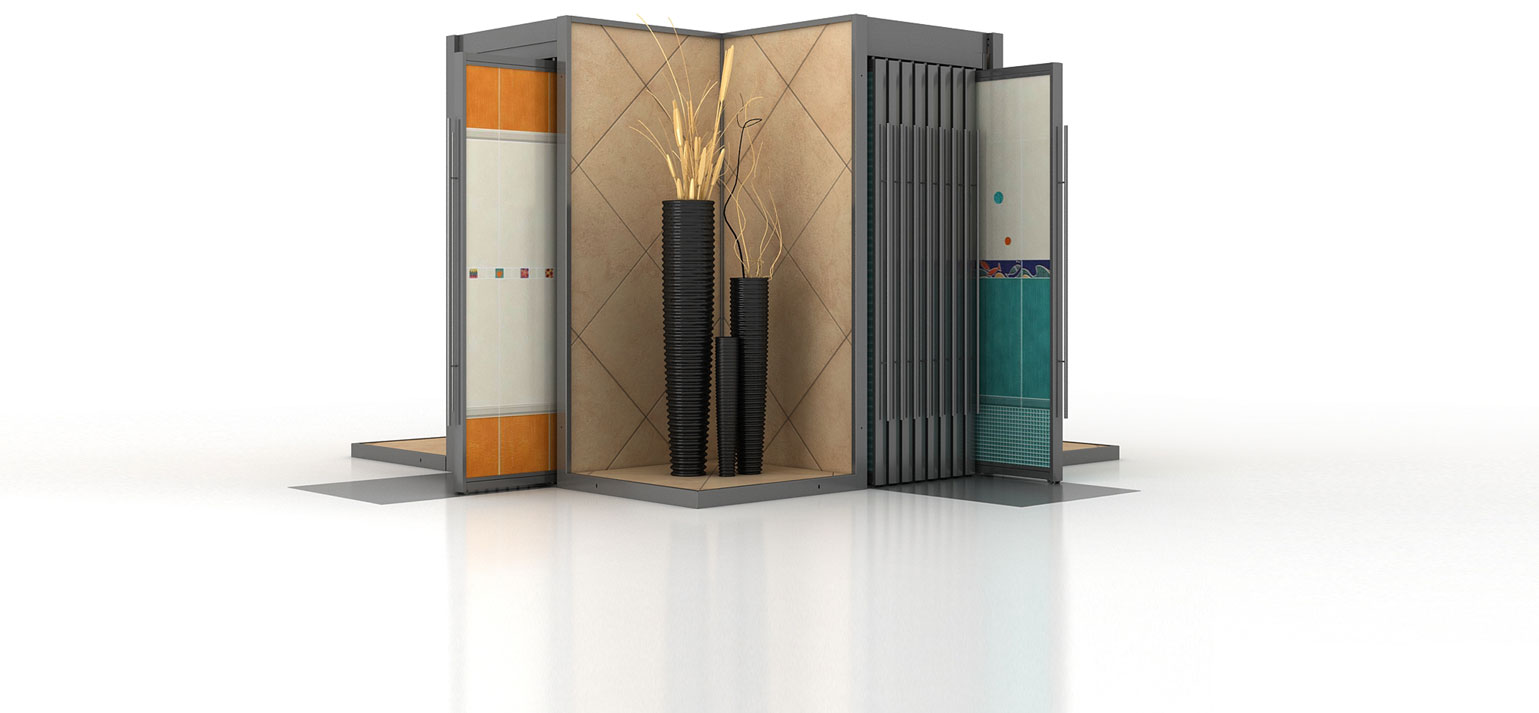 为你的展厅墙装上翻页式展示架,能快速对比出墙砖的不同效果。